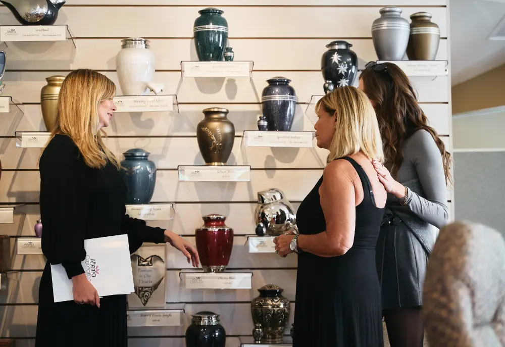 No. A funeral service with a casket can take place prior to cremation, but a casket is not necessary for the cremation itself. Alterna’s direct cremation service includes a simple container for the cremation as well as a dignified box for the remains. After cremation, the ashes of the deceased are often stored in an urn.